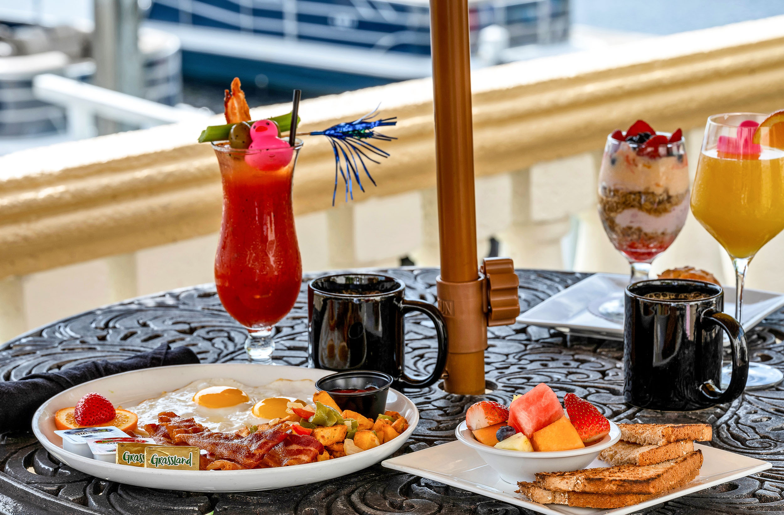 At our gorgeous Bambu Tropical Bar & Grille, our Naples waterfront restaurant you have the option to sit indoors or at the covered, open-aired dining space or benefit from the Florida sun on the bayside terrace. Both options offer sweeping views of the bay, our marina, and a gorgeous sunrise – if you’re an early bird. Our new, unique, tropical menu includes items for all hours of the day, such as hot breakfast, fresh salads, a variety of handhelds, grilled and raw seafood, and complete entrées. Whether you’re pairing your meal with a tasty cocktail or looking to escape the heat, our bartenders will mix up a concoction of your favorite tropical drink for your enjoyment.